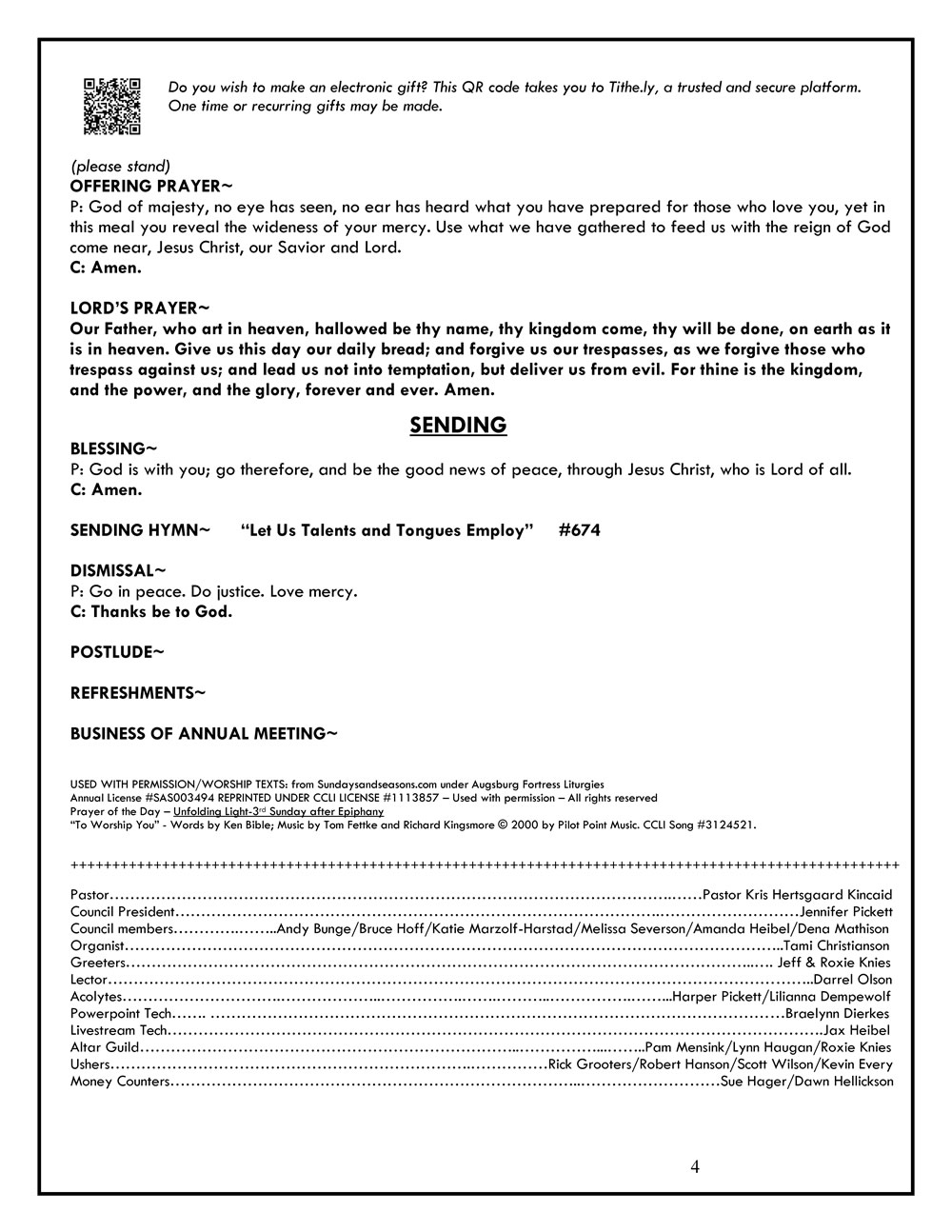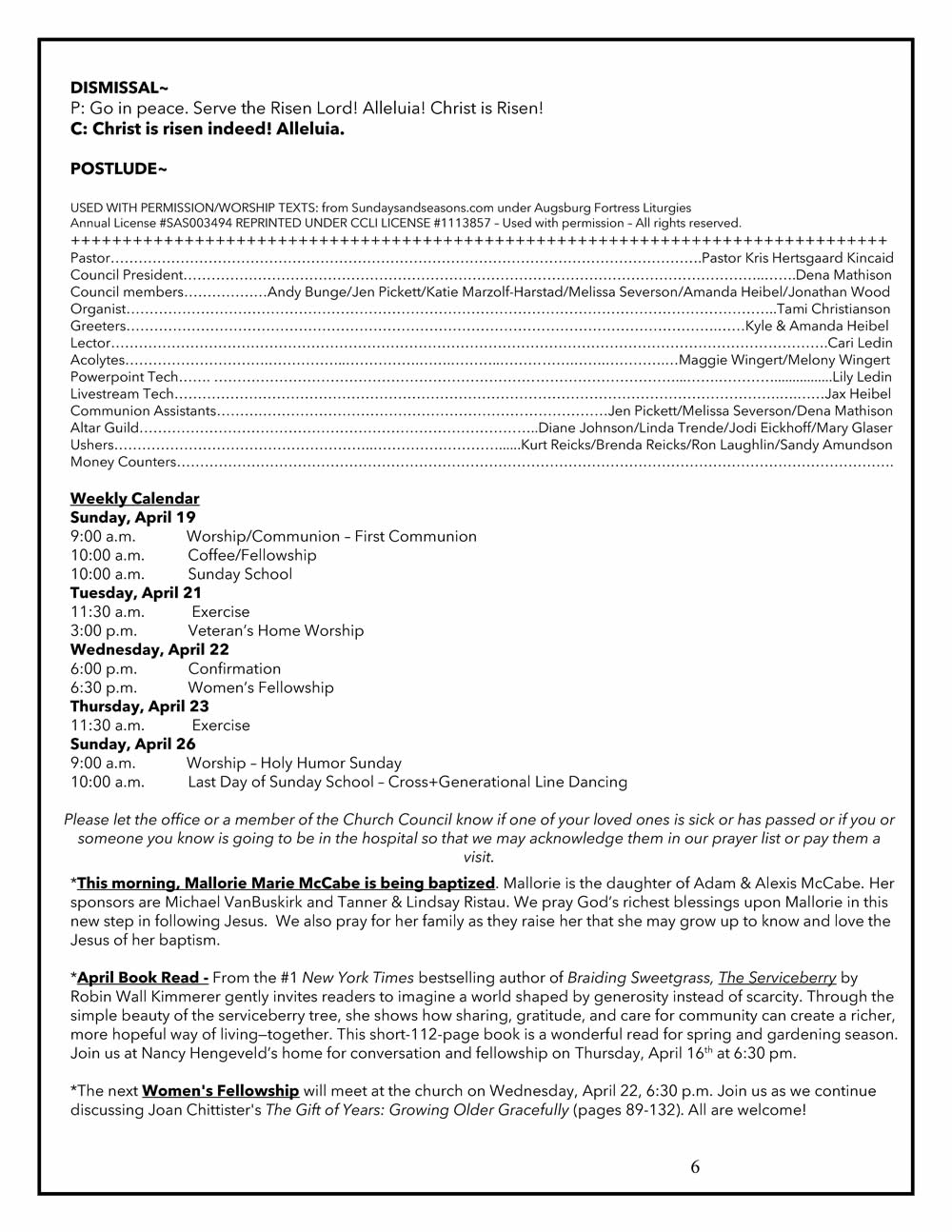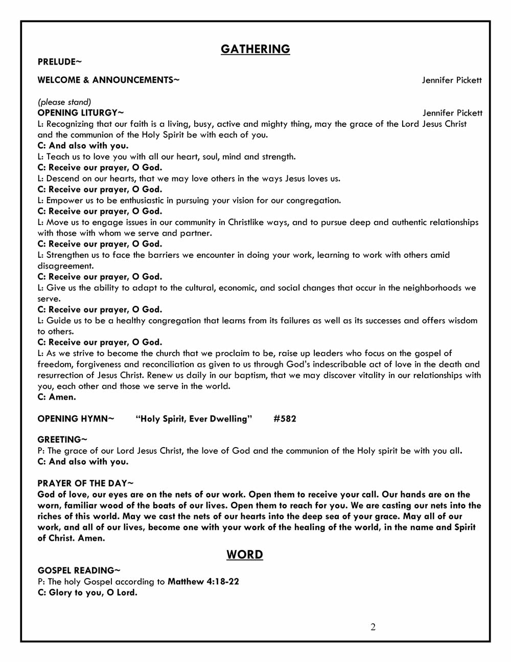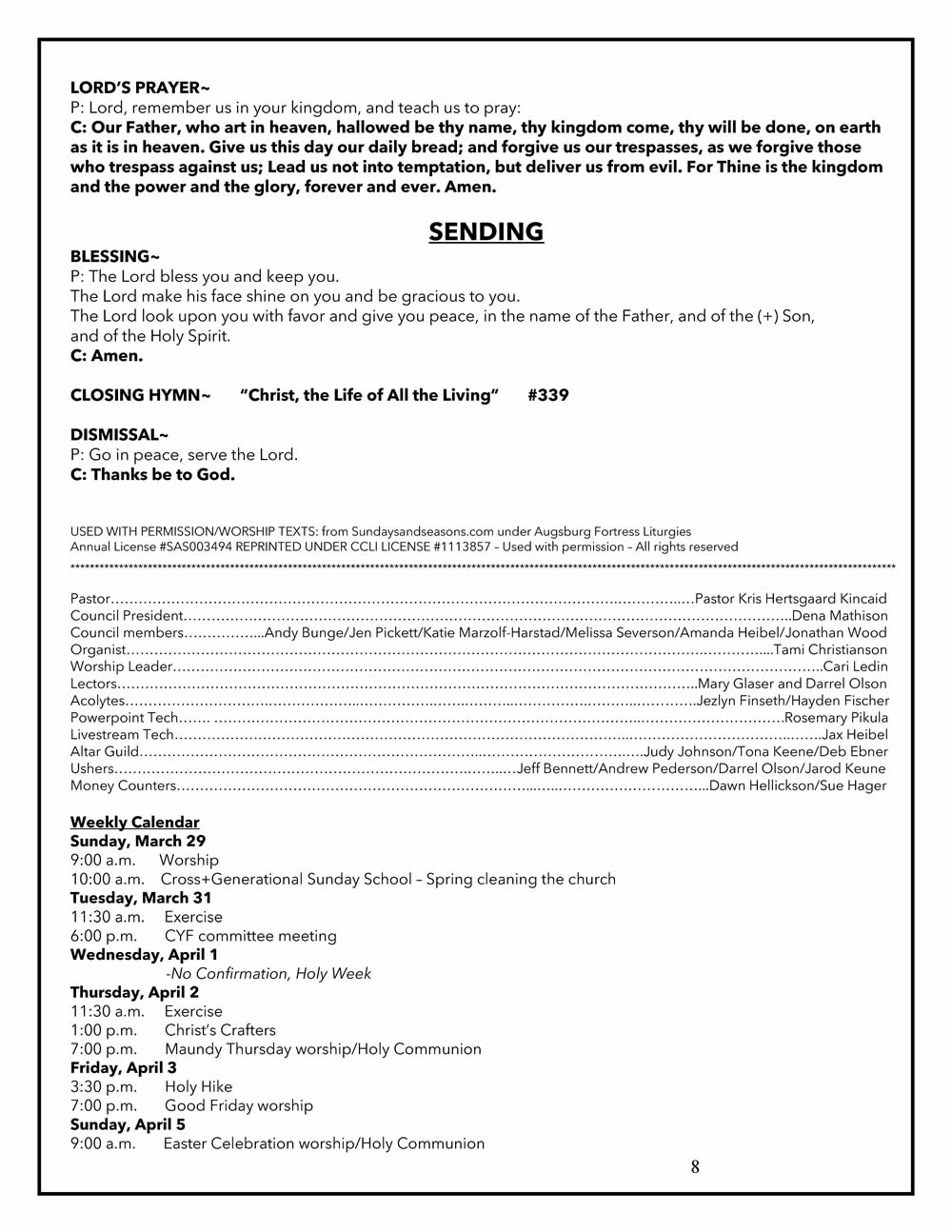 Sunday Bulletin